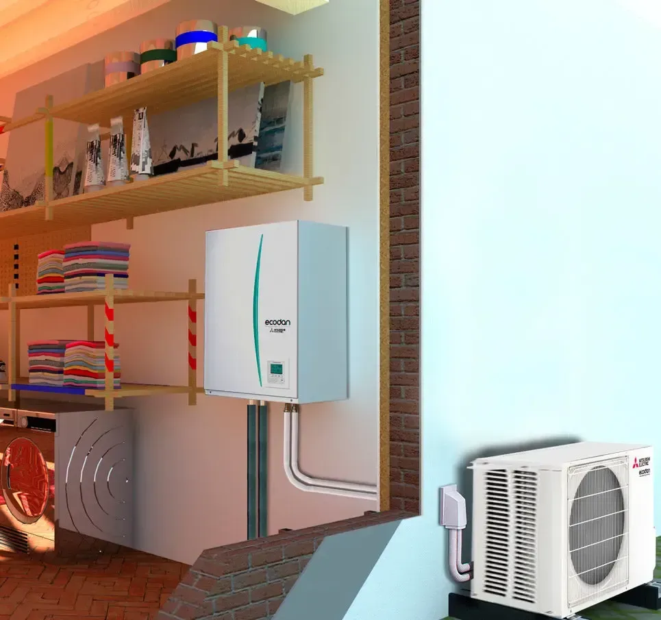 Mitsubishi Electric -ilmavesilämpöpumppu voi tuoda jopa 50 % säästöt kiinteistön lämmityskustannuksiin. Lämmitysjärjestelmä koostuu tehokkaasta ulkoyksiköstä ja kompaktista Hydrobox-sisäyksiköstä, joka hyödyntää energiatehokasta lämpöpumpputekniikkaa.